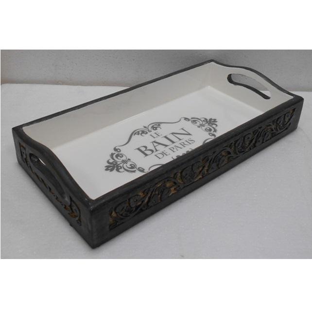 Plateau en bois décoratif de nouveau Design avec sculpture à la main à l'extérieur et sérigraphie avec travail d'émail à l'intérieur.