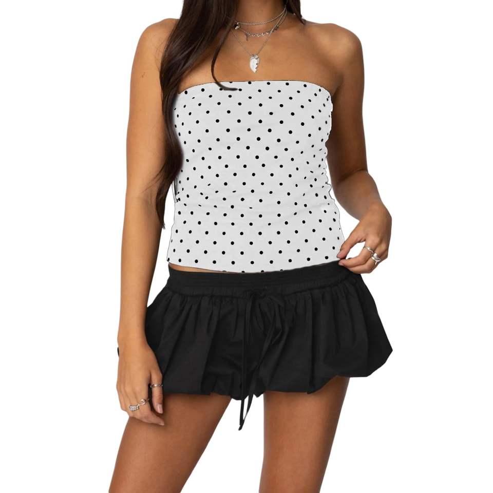 Nouveau design Bandeau à pois bustier tubulaire ajusté sans manches haut court débardeur d'été polyvalent pour les femmes décontractées et tenues de soirée