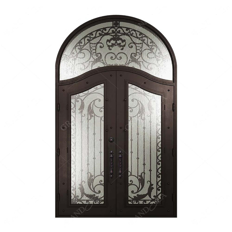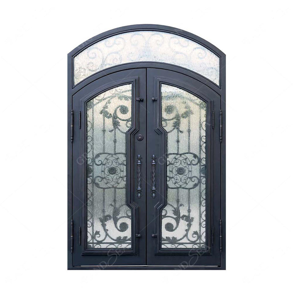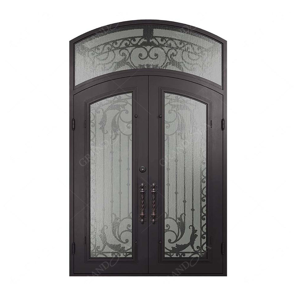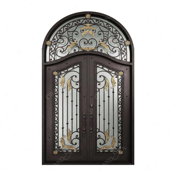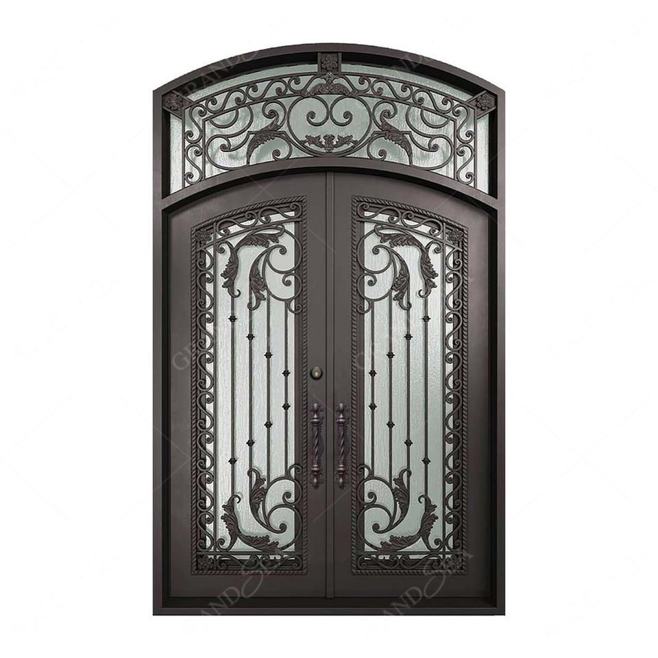 Nouvelle conception de porte d'entrée en fer forgé à double grille pour résidence, portes d'entrée de sécurité en fonte double pour l'extérieur