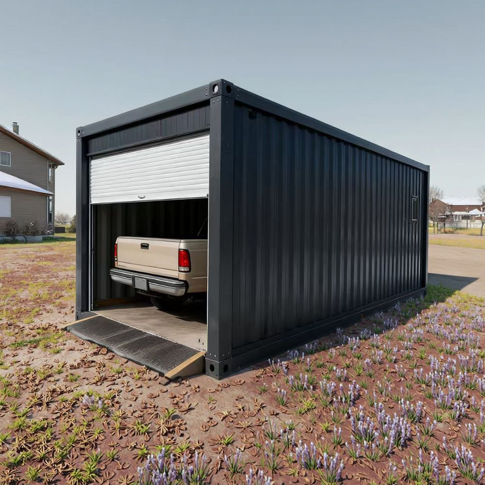 Garage préfabriqué durable de conception nouvelle avec structure en acier renforcé et porte enroulable