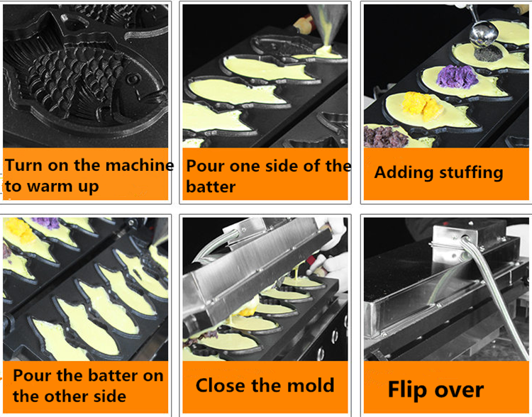 Nouvelle conception, prix d'usine, appareil professionnel à gaufres en forme de poisson/12 pièces, appareil à gaufres en forme de poisson au gaz, Taiyaki