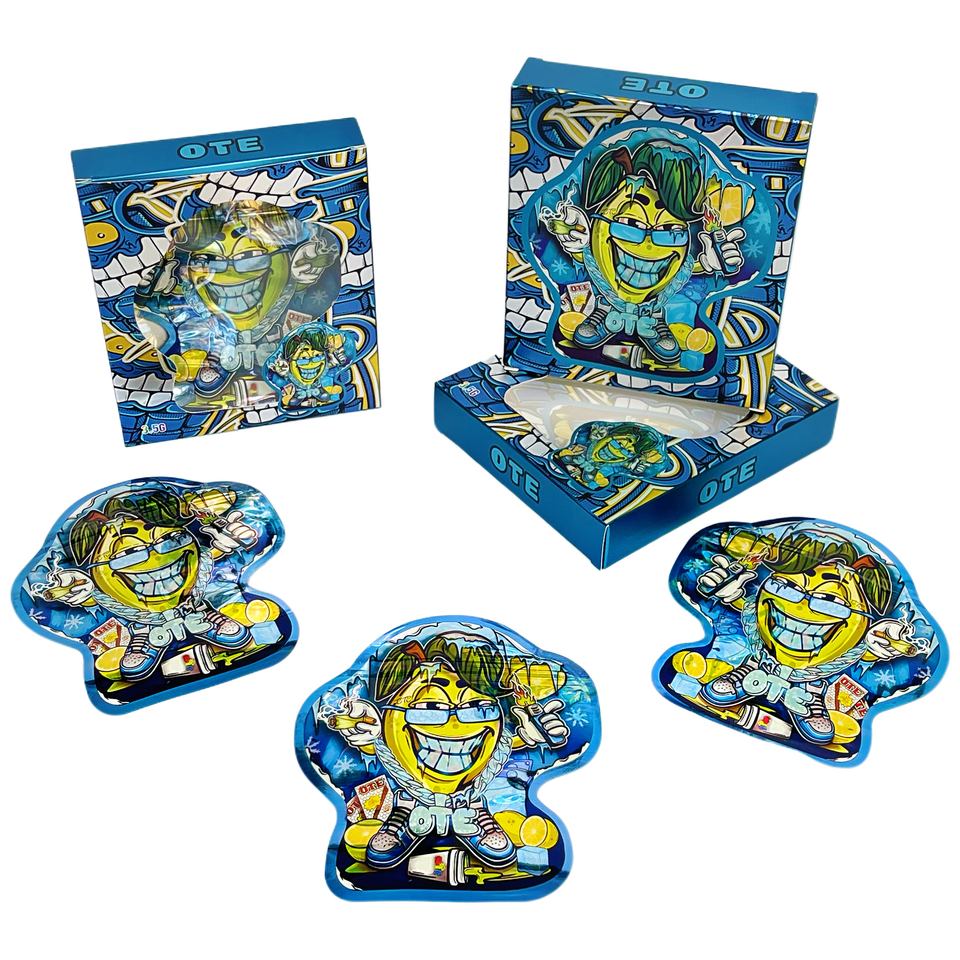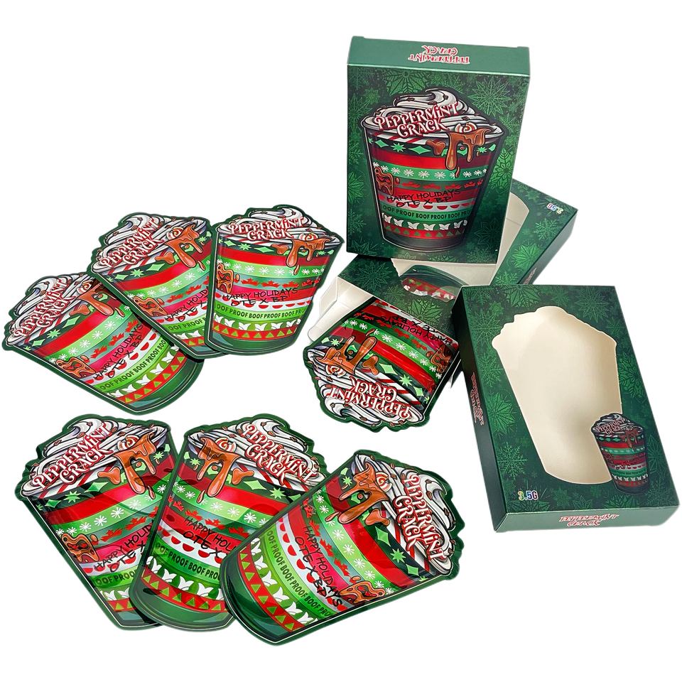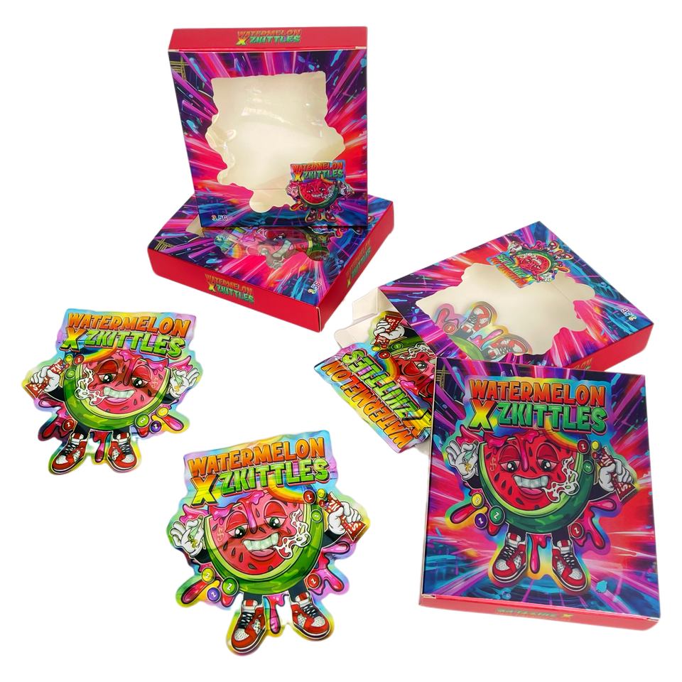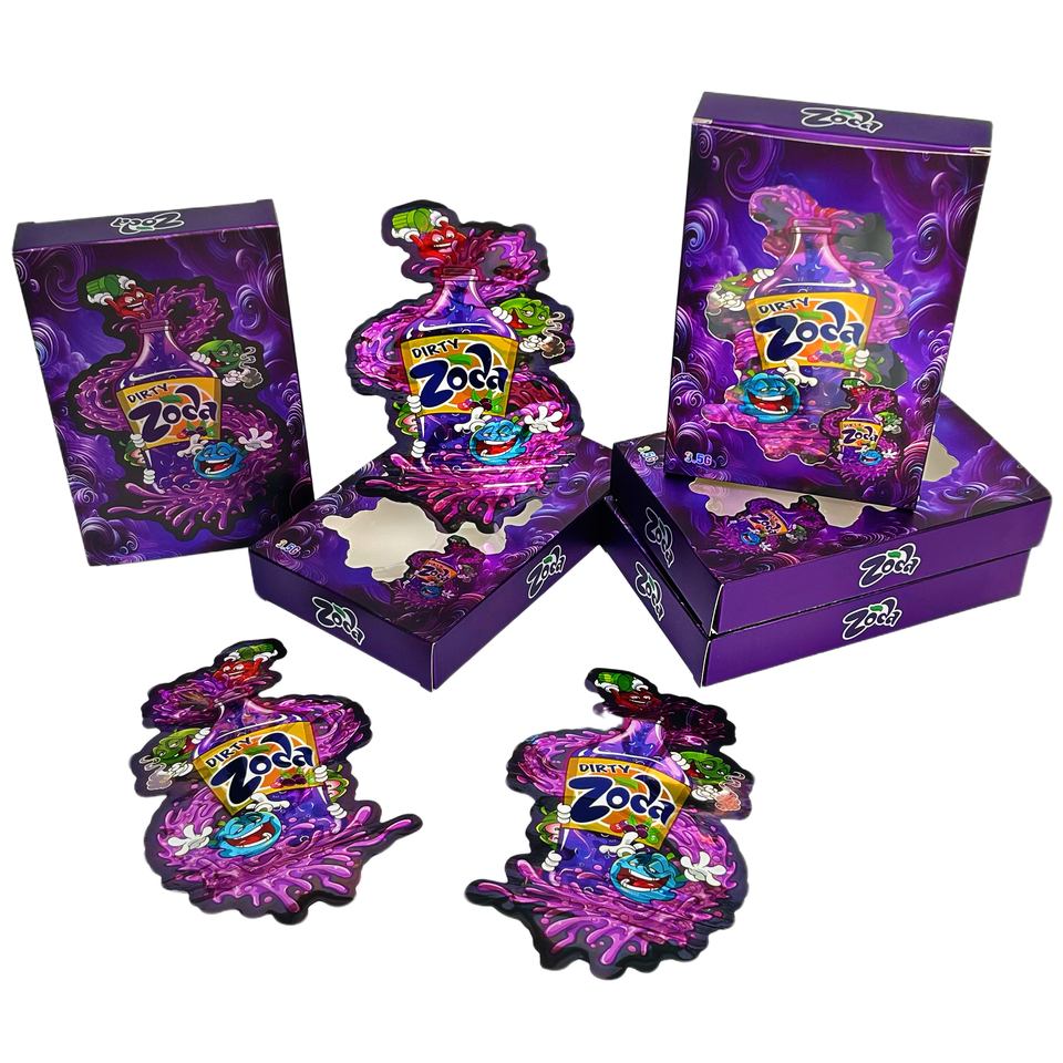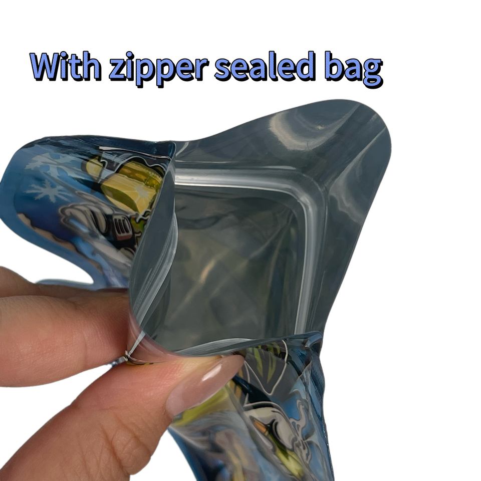 Nouvelles pochettes Mylar découpées à l'emporte-pièce avec fermeture éclair et fenêtre de forme irrégulière, en stock