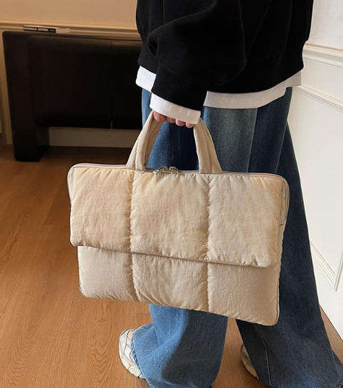 New Design Factory Custom Solid Color Light-Weight Women's Computer Puffer Handbag Fluffy Quilted Laptop Sleeve Bag