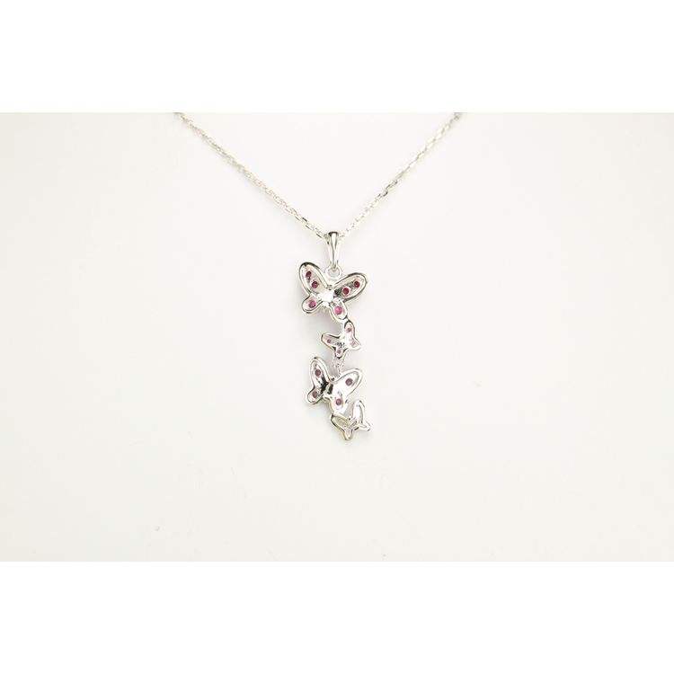 Nouveau Design prix usine individuation bijoux en argent mignon 925 argent rose cristal papillon pendentif collier