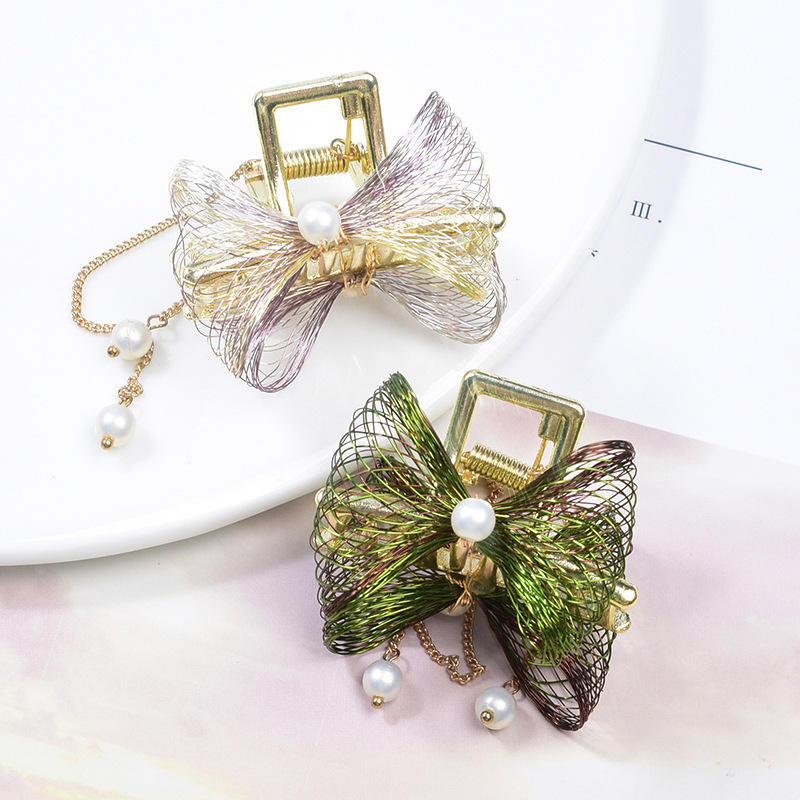 Nouveau design fantaisie assessoris glands perles maille métallique arc coréen pinces à griffes pince à cheveux crabe avec un grand prix
