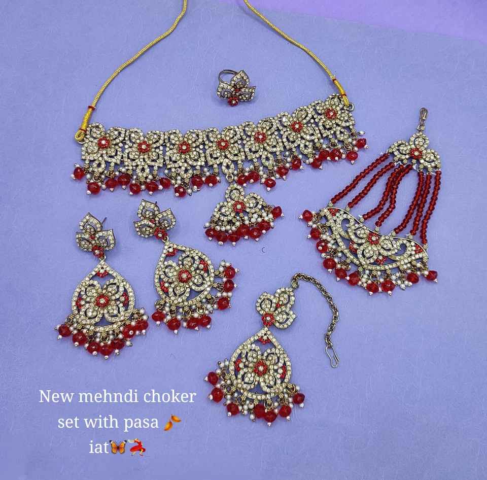 Type:Ensemble de bijoux en perles vertes et collier clouté Kundan