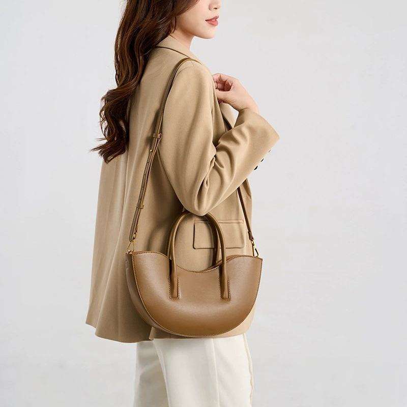 Nouveau design, mini sac de shopping tendance pour femmes, sacs à main demi-lune en cuir véritable, portefeuille bandoulière, fermeture éclair résistante à l'eau