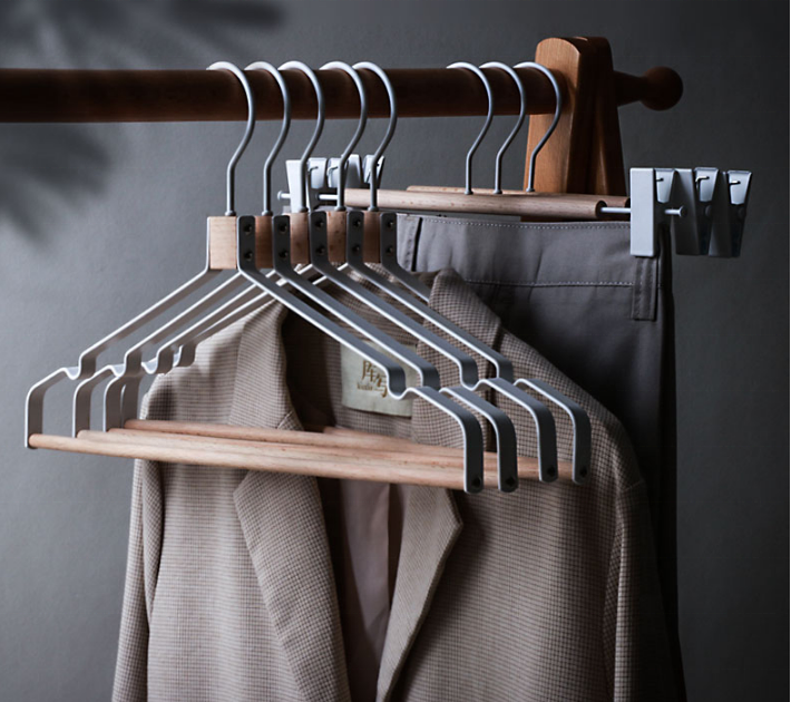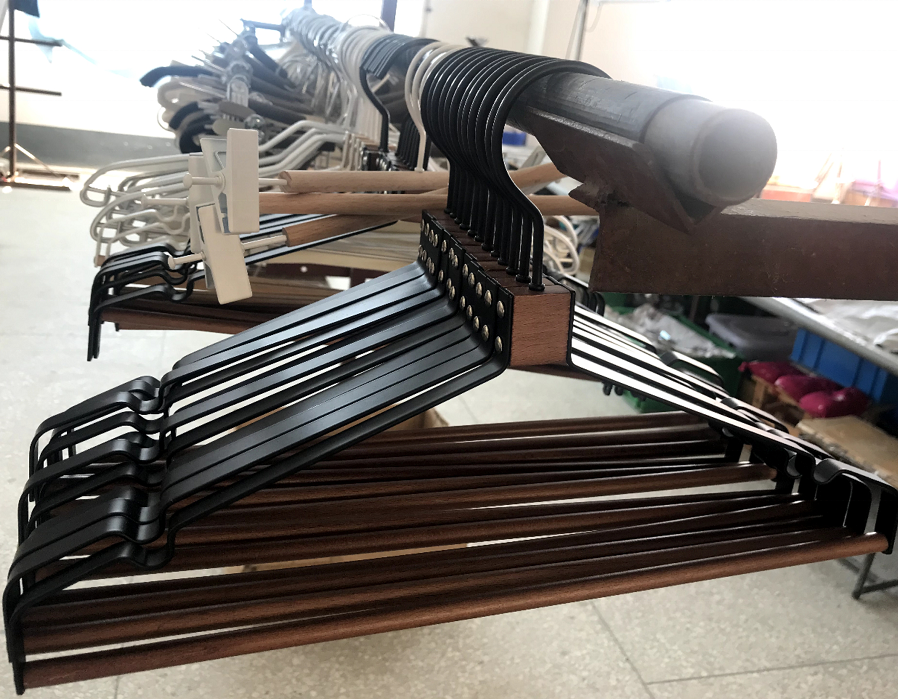 Cintre de manteau plat en métal avec barre en bois antidérapante, nouveau design livraison gratuite