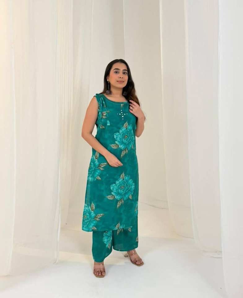 Nouvelle collection de Kurti et pantalon à imprimé floral pour femmes, manches courtes, style pakistanais, pour le bureau et les soirées, exportation mondiale depuis l'Inde.