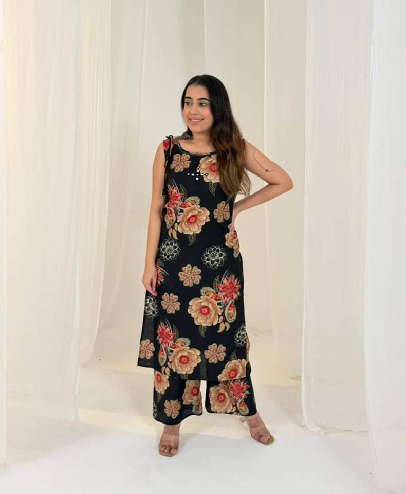 Nouvelle collection de Kurti et pantalon à imprimé floral pour femmes, manches courtes, style pakistanais, pour le bureau et les soirées, exportation mondiale depuis l'Inde.