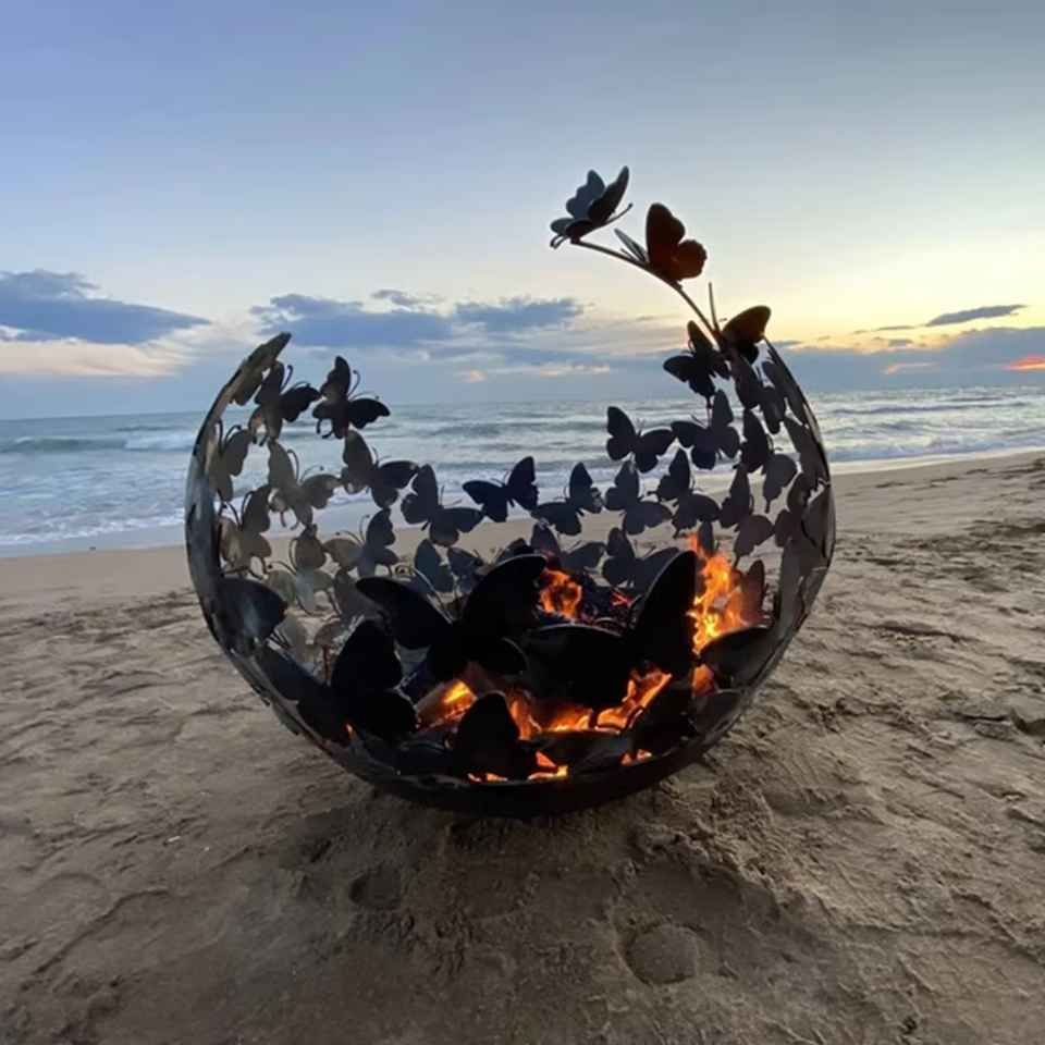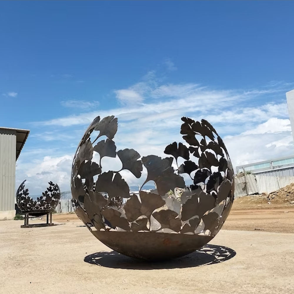 Nouvelle Conception – Brasero Sphérique Autoportant Rustique et Écologique pour Jardin Extérieur, en Acier, Motif Feuille de Vigne Féerique (UK)