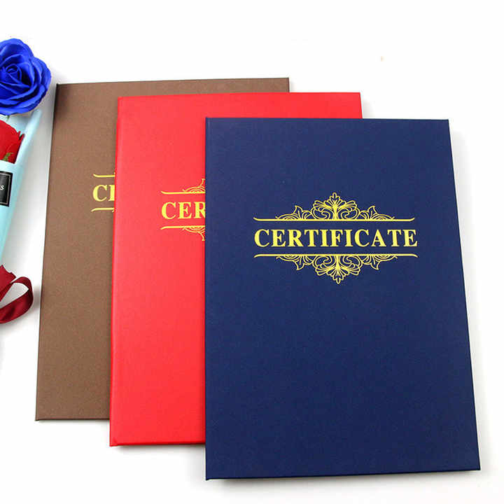Nouvelle conception de dossier de diplôme en cuir PU A4 avec feuille d'or pour certificat