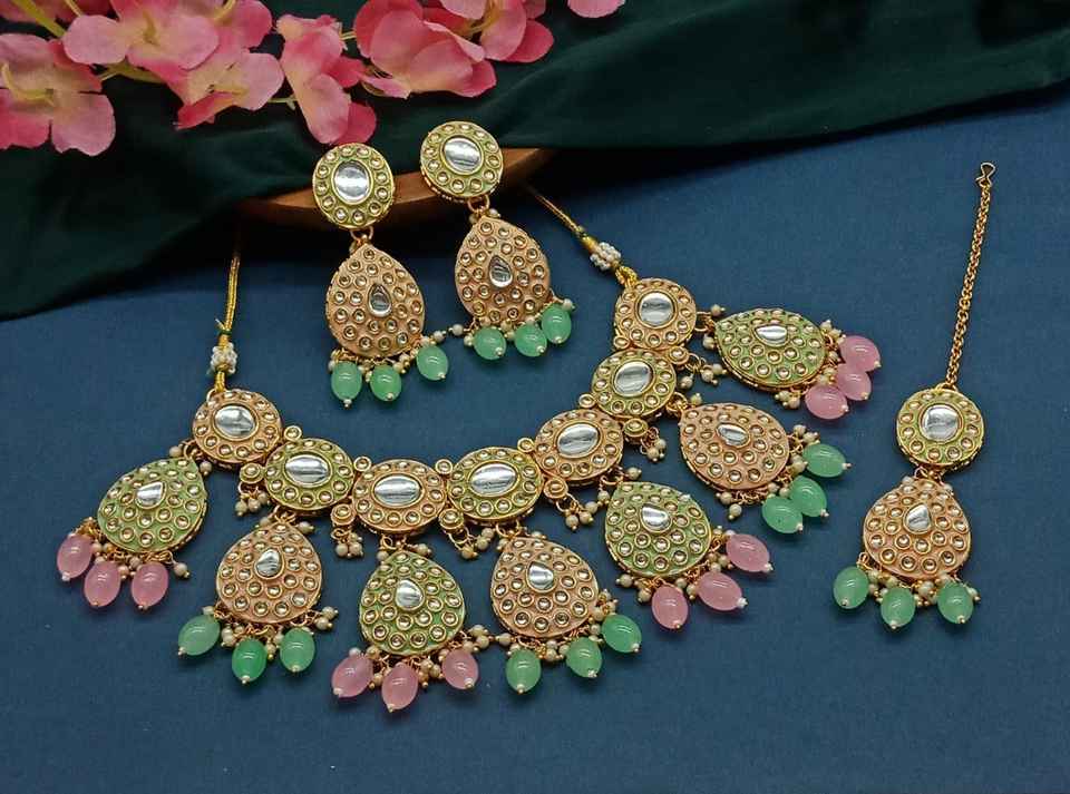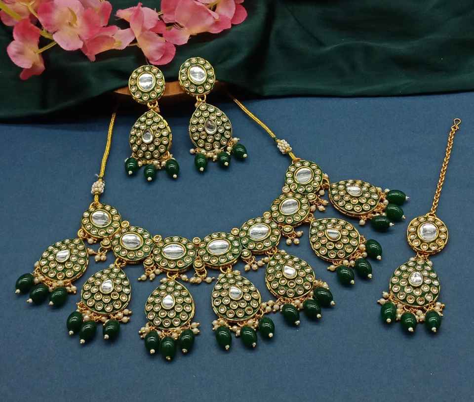 Type:Ensemble de bijoux en perles vertes et collier clouté Kundan