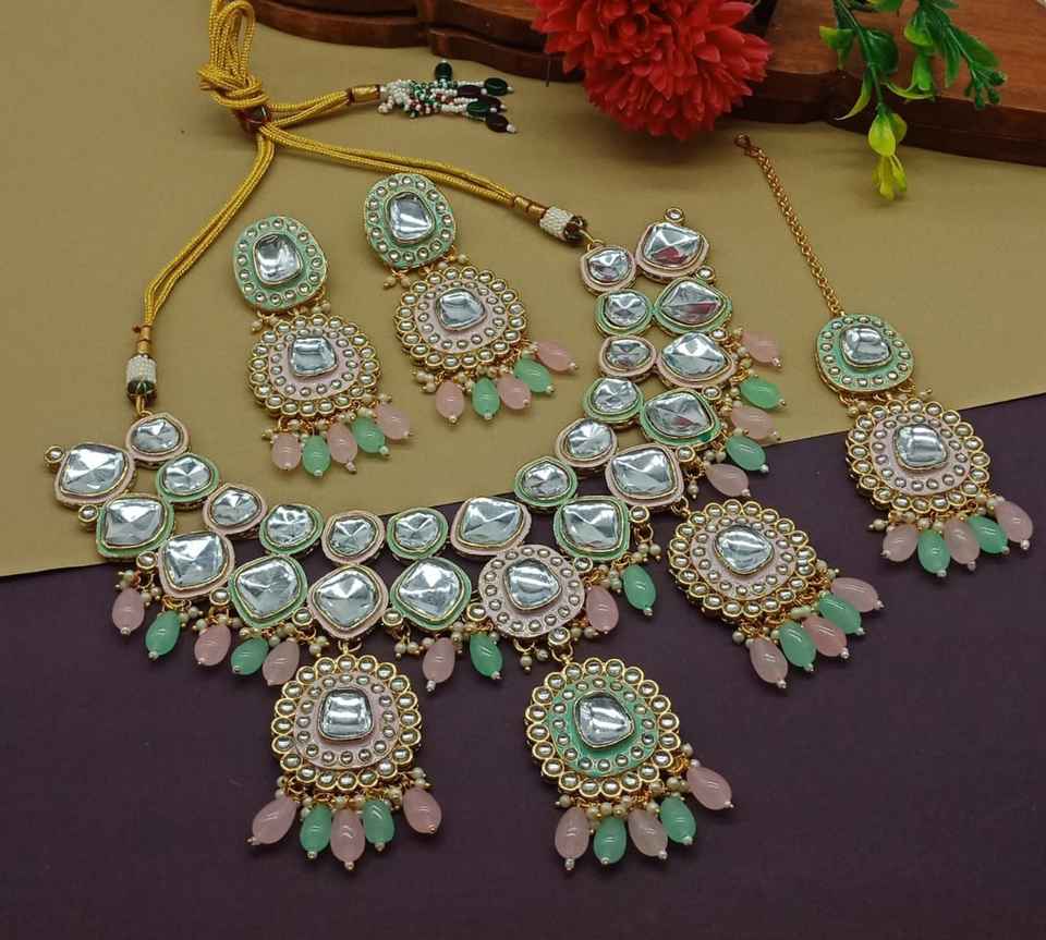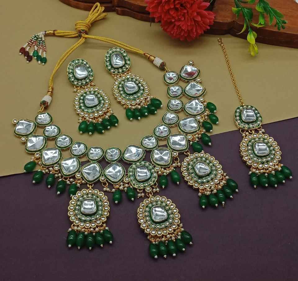 Ensemble de bijoux en perles vertes et collier clouté Kundan