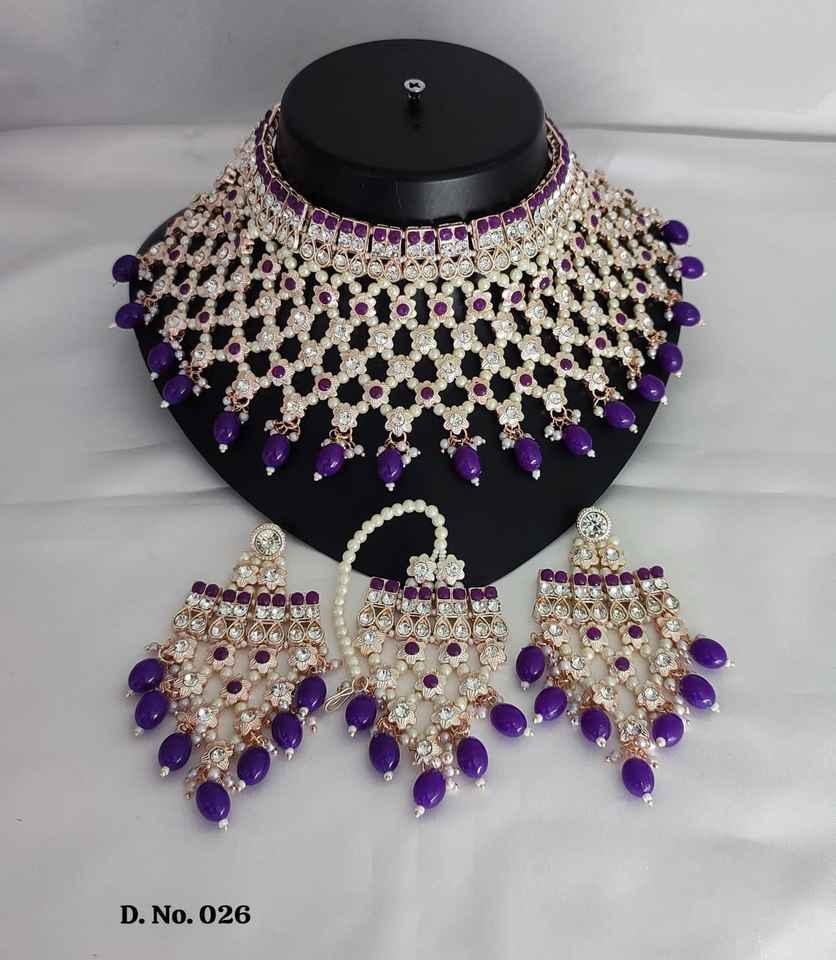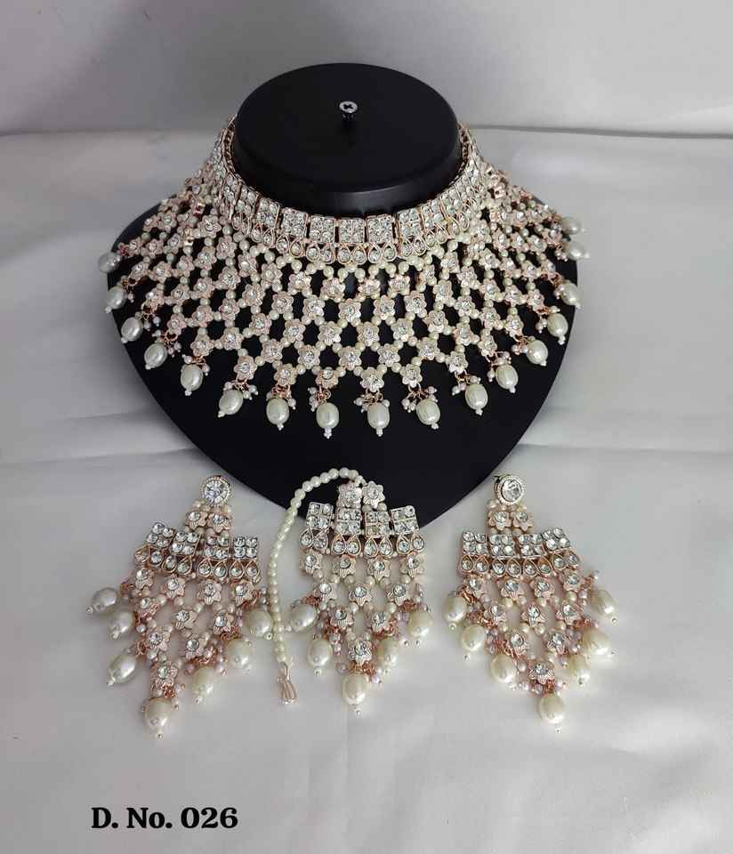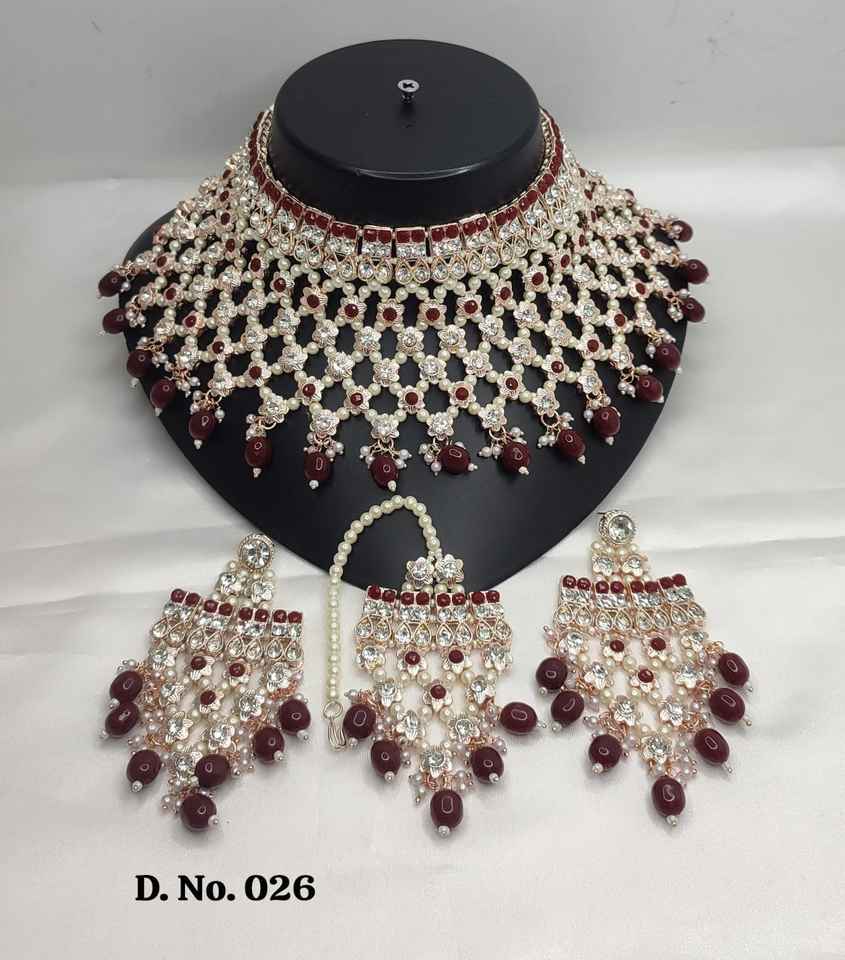 Nouveau design plaqué or traditionnel goutte perle et pierre cloutée boucle d'oreille Mangtika collier ras du cou ensemble et ensemble de bijoux pour femmes