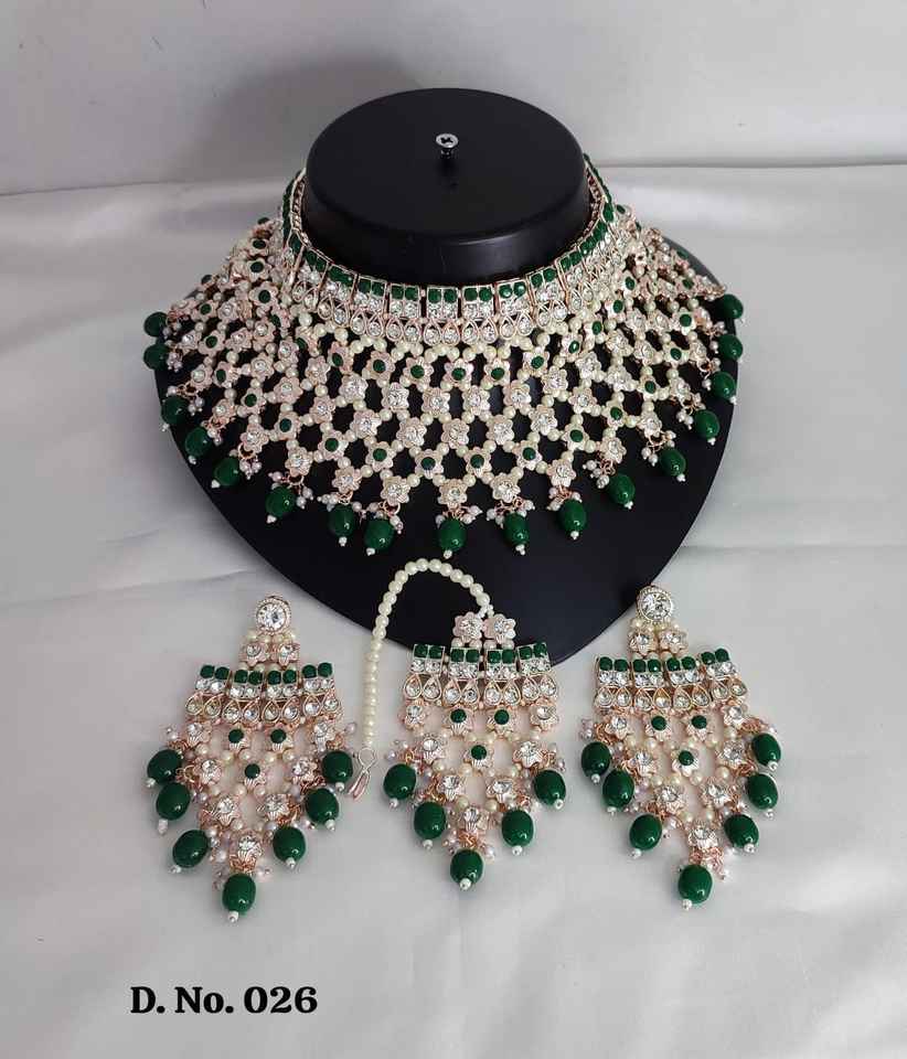 Ensemble de bijoux en perles vertes et collier clouté Kundan