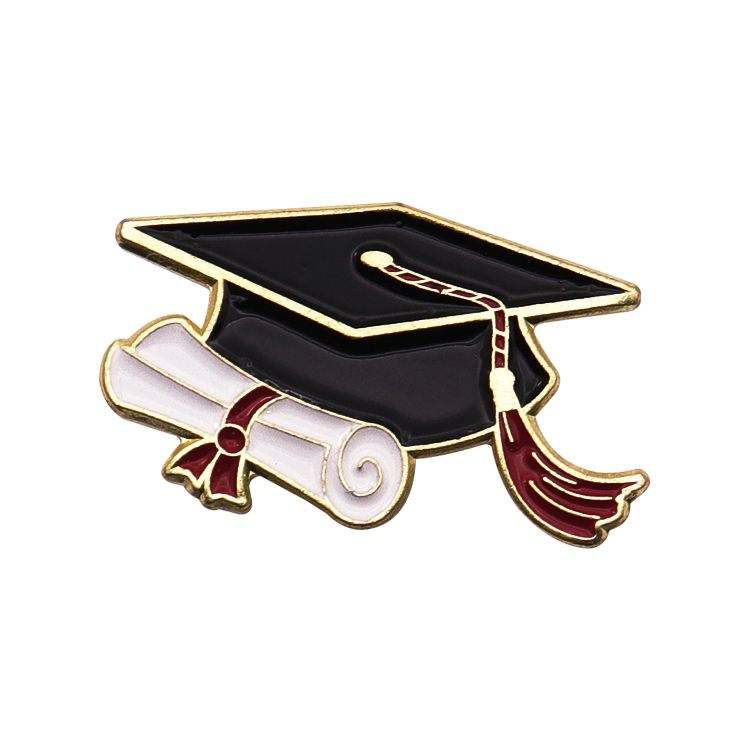 Nouvelle conception Broche en métal moulé pour cérémonie de remise des diplômes, avec motif créatif de chapeau de doctorat et fleur, pour sac à dos et chemisier