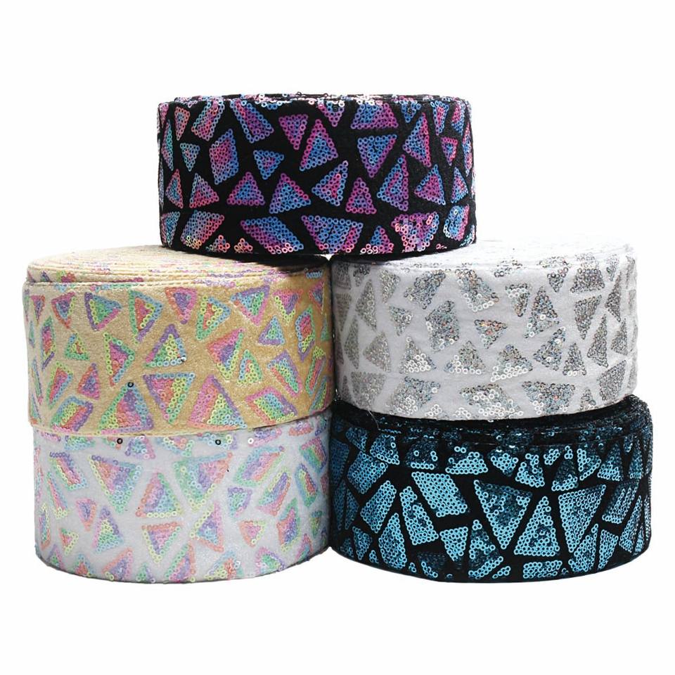 Nouveau Design Gros-Grain Ruban Paillettes 3 "Large Accessoires De Cheveux 75mm Ruban À Paillettes pour Filles Cheveux Robe Décoration Bandeau