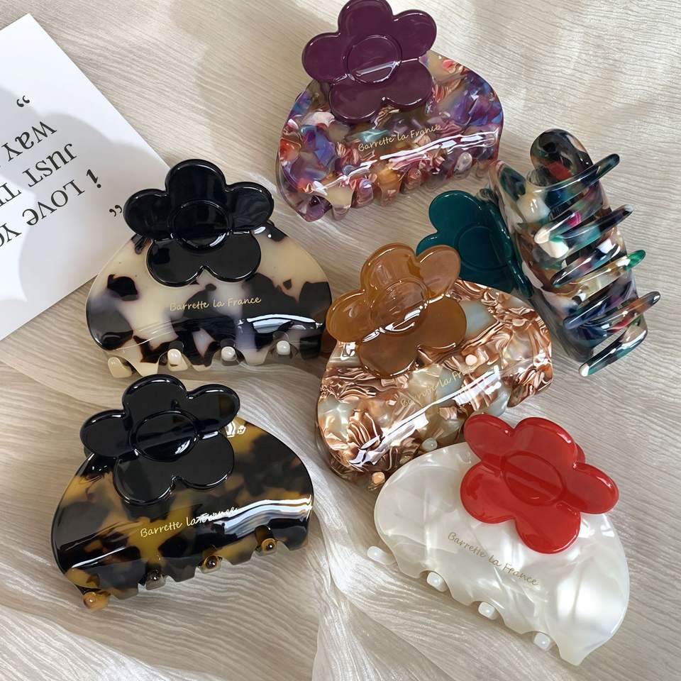 Nouvelles pinces à cheveux design fleur, pinces à cheveux populaires en acétate écologique pour femmes
