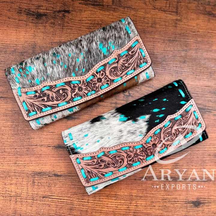 Product Name:Western Hair On Tooled Bi-fold Wallet