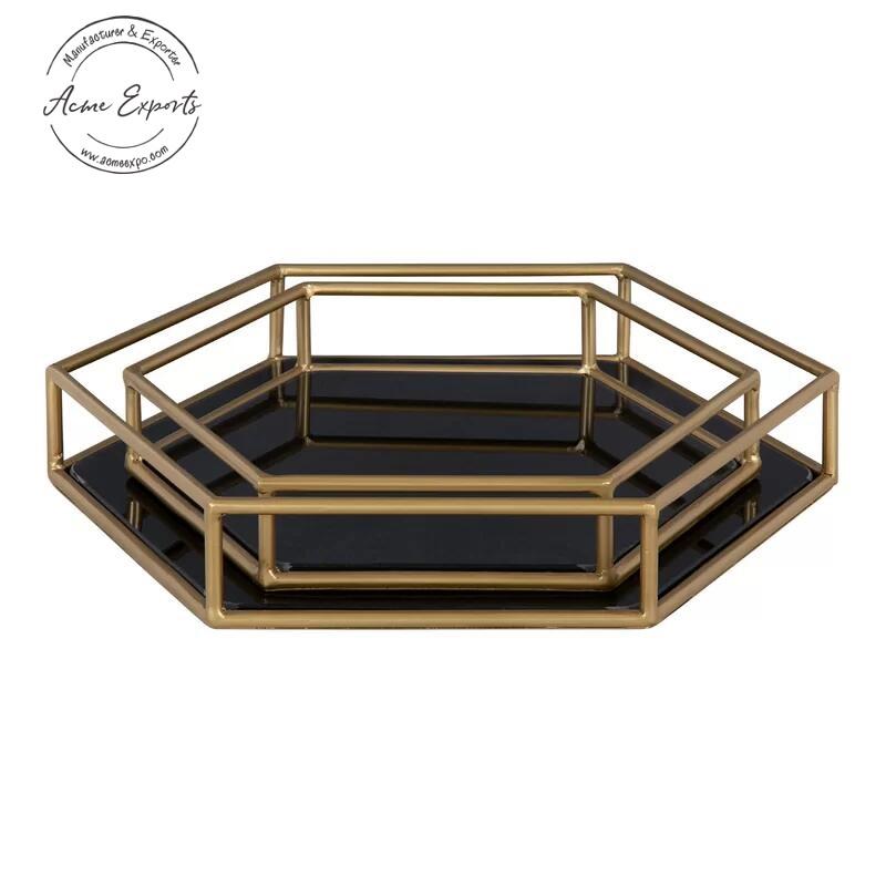 Nouveau Design Long plateau de service en métal artisanal avec finition dorée utilisé pour la décoration de la maison et le service des Fruits secs
