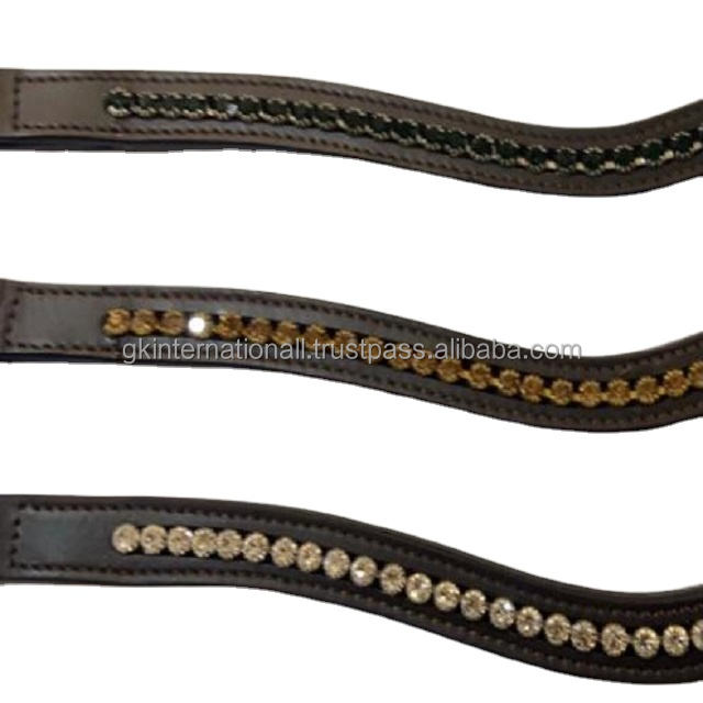 Nouveau design fait à la main vide canal selle cuir cheval sourcil bande pour bride incrusté de 1 rangée cristaux multicolores bling chaîne