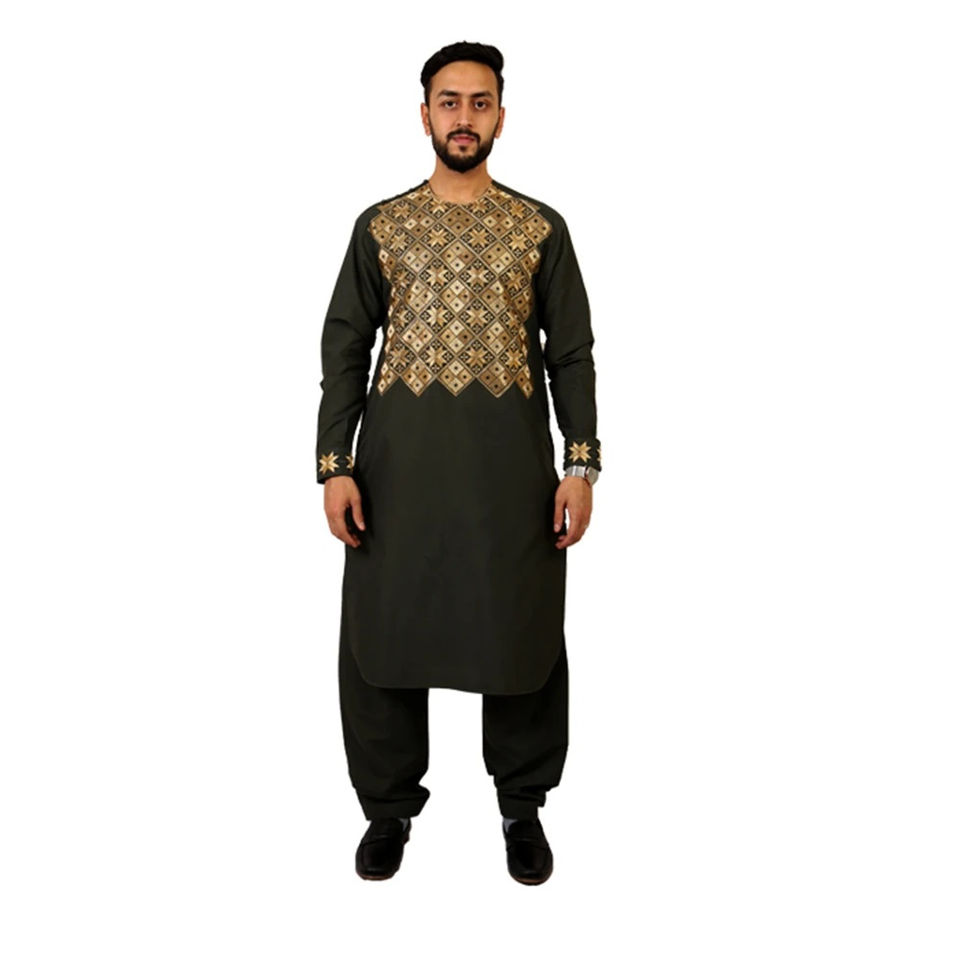 Nouvelle conception, salwar kameez traditionnel pour homme, fait main, 2 pièces, en coton, avec broderie et imprimé, respirant et léger