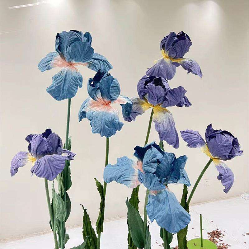 Nouveau design fait à la main géant fleur de lis iris pavot bleu violet fleur en papier pour fenêtre affichage fête mariage