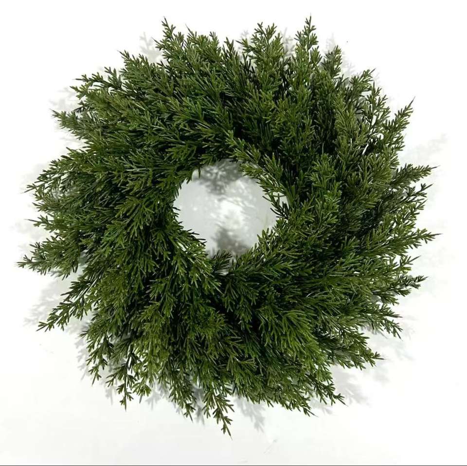 Guirlande de Noël en aiguilles de pin artificielles de luxe, faite à la main, nouveau design, 45 cm/50 cm, PE/PVC, vert, avec nœud et cloche, pour porte d'entrée intérieure