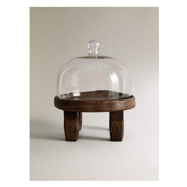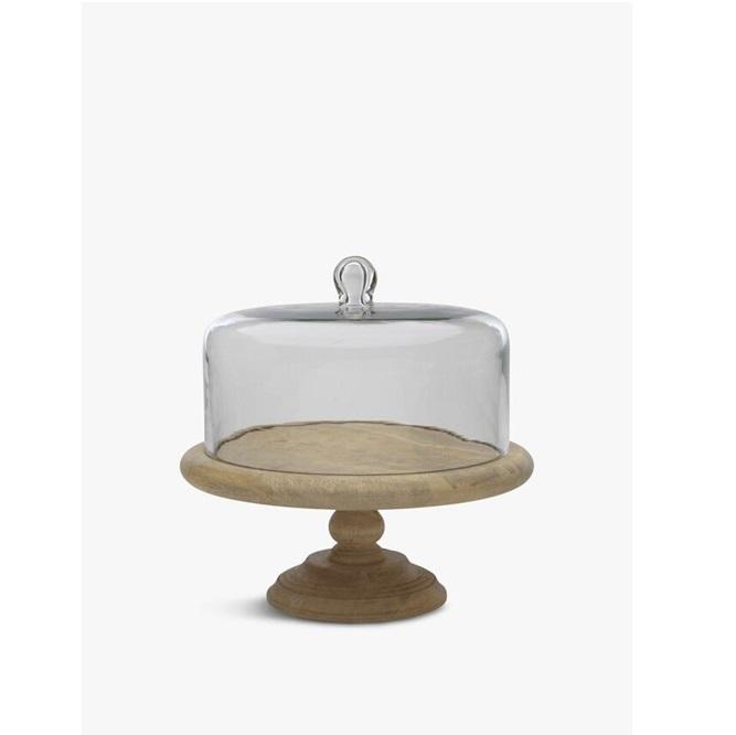 Nouveau design de piédestal d'affichage de gâteaux en bois de mangue fait à la main support de gâteau de tasse de service avec dôme pour la maison les restaurants font la fête