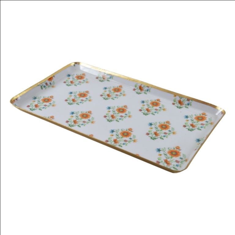 Nouveau design de plateau en métal fait à la main émaillé fini imprimé floral décoration de table plateau en métal look simple et chic au prix le plus bas