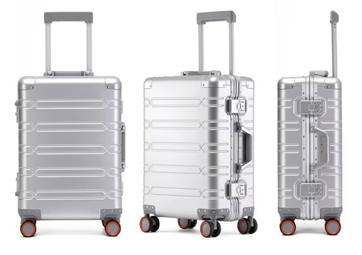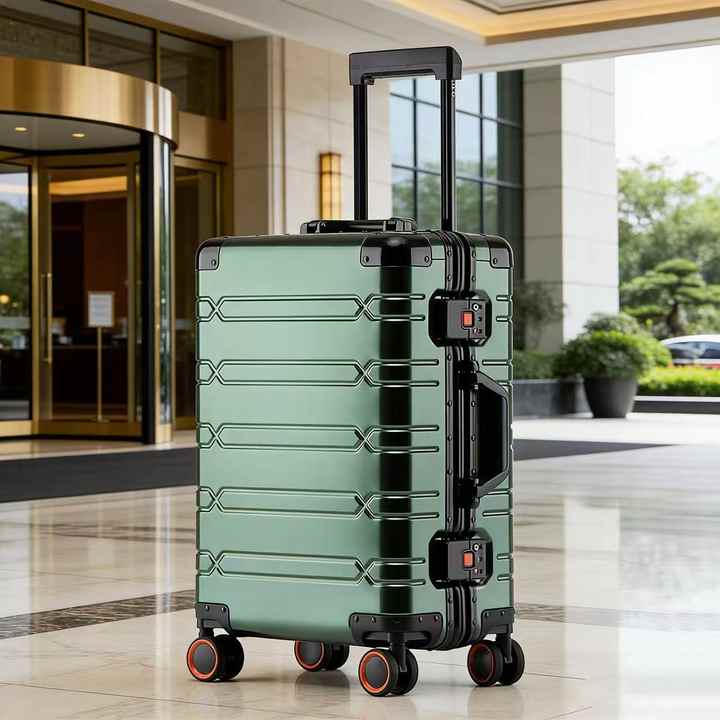 Valise de voyage à coque rigide en alliage d'aluminium-magnésium, nouveau design, avec serrure TSA 360° ° Valise cabine en métal avec roulettes pivotantes