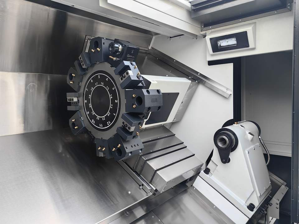 Nouveau design, tour CNC 10 axes robuste 12T avec tourelle à outils, centre de tournage à guidage linéaire, lit incliné et double broche haute vitesse Fanuc
