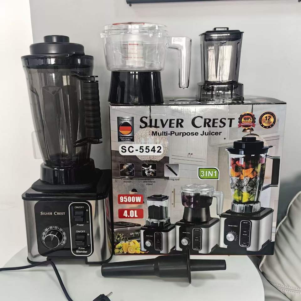 Nouveau Design Robuste 9500W Puissance 4L Blender Silver Crest 3-en-1 avec 3 Bols pour Usage Domestique et Professionnel Moulinex