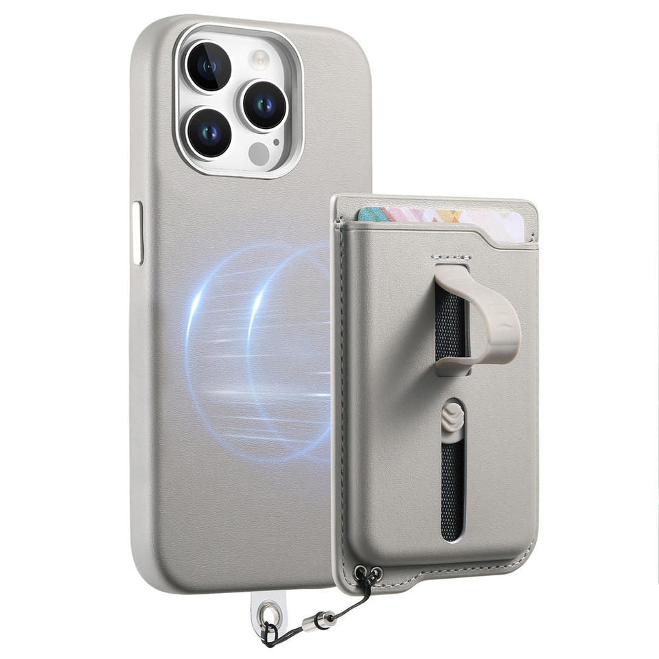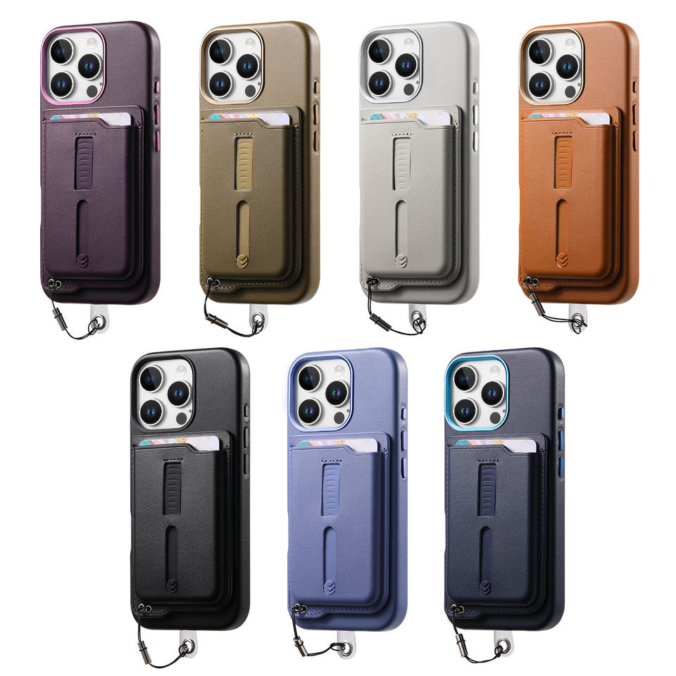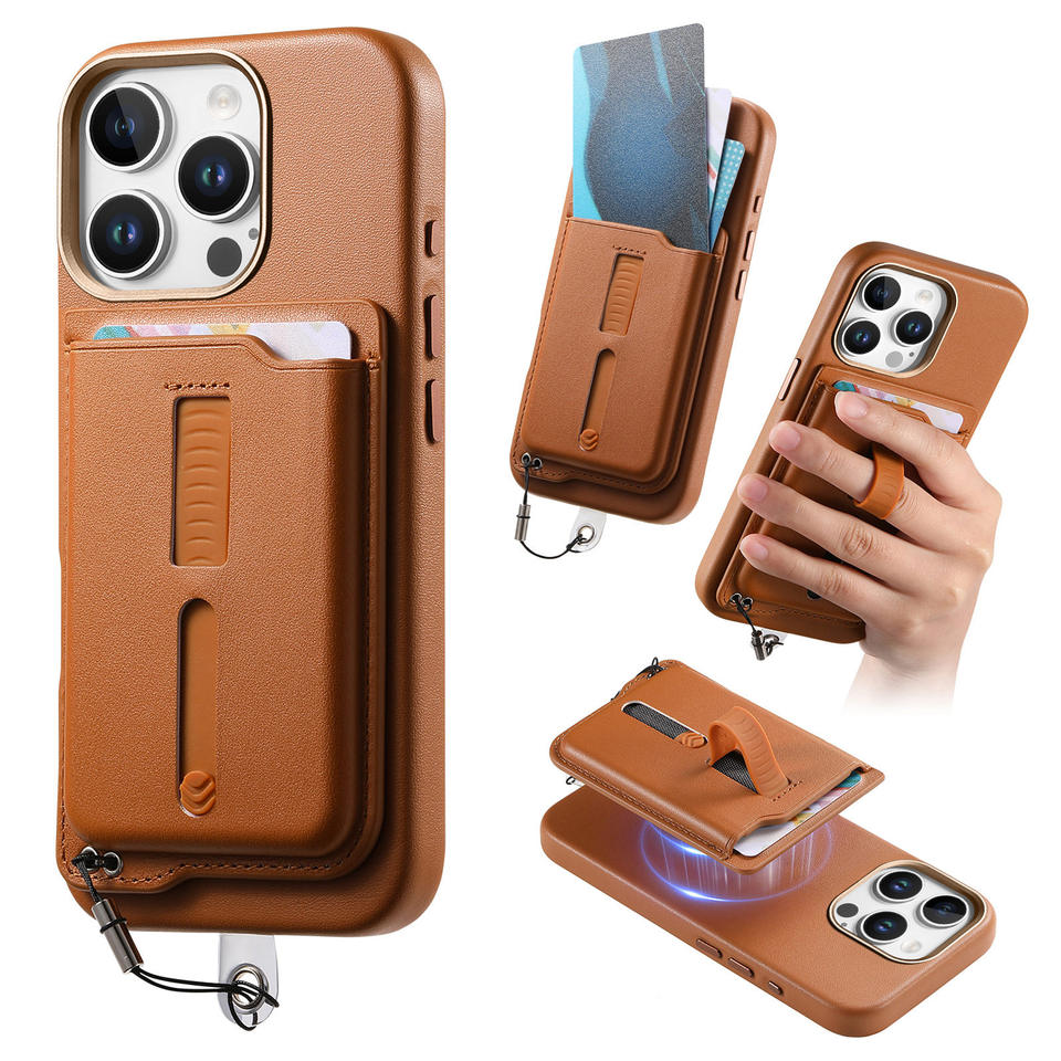 Nouveau design, porte-cartes de crédit en cuir avec sangle de poignet rétractable cachée, aimant puissant, blocage RFID, rotation gauche-droite, 8 cartes