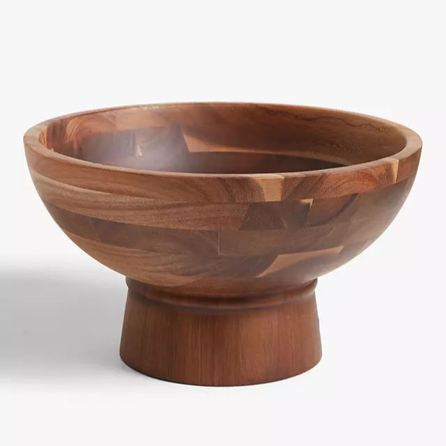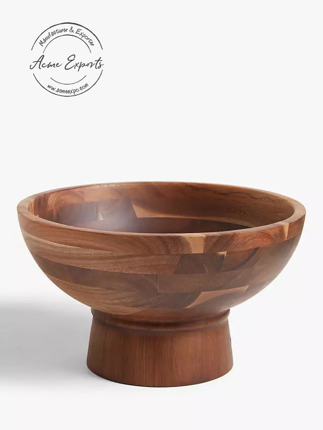 Bol de piédestal en bois rustique Acacia bois salade fruits service affichage décor ustensiles de cuisine naturel Artisan