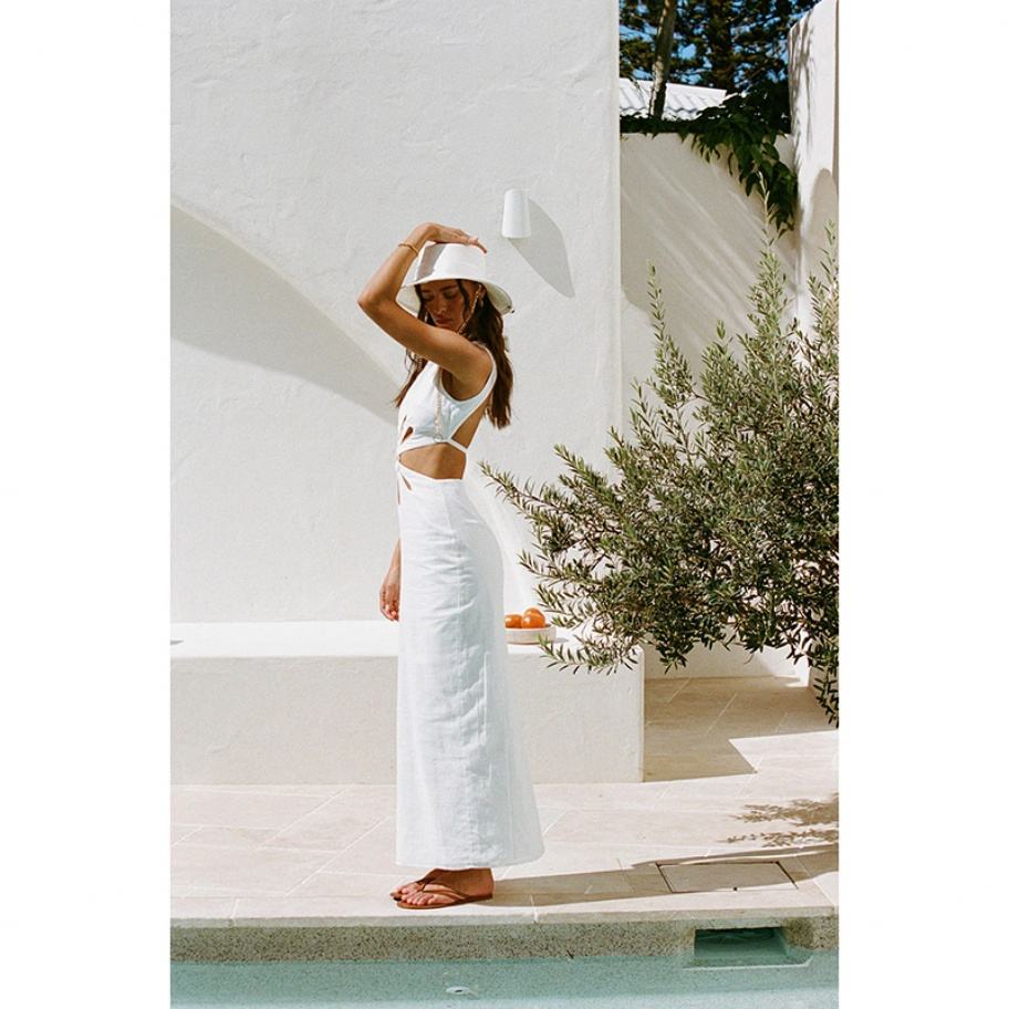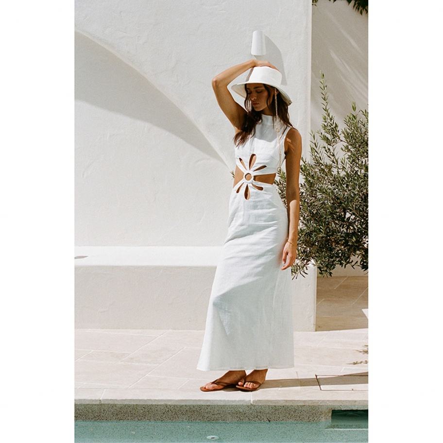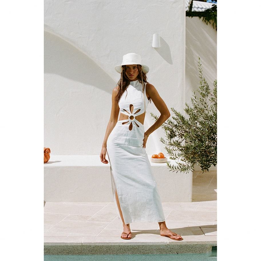Nouvelle robe d'été décontractée pour femme en tricot, col haut, détail découpé, style personnalisé, haute qualité, design tendance
