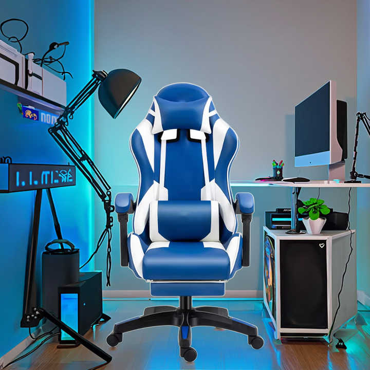 Chaise de jeu inclinable de haute qualité avec repose-pieds, design nouveau, bleu, ergonomique