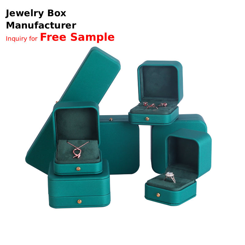 Nouvelle conception, boîte rectangulaire de haute qualité en cuir PU vert et velours gris, fermeture à boucle pour bague, boucles d'oreilles, bracelet, pendentif