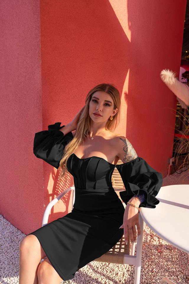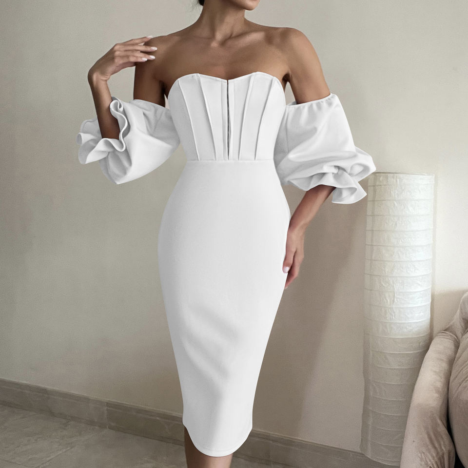 Nouvelle Robe de Soirée Élégante à Volants Épaules Dénudées Taille Haute Coupe Moulante pour Femme