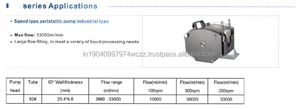 Nouvelle conception de tête de pompe péristaltique PPS haute précision PP 500 Alpha, débit de 12 L/min, vitesse d'aspiration de 10 à 300 tr/min pour l'industrie chimique et pharmaceutique