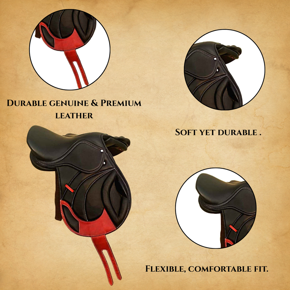 Nouvelle selle de cheval de conception moderne pour un confort optimal lors du saut d'obstacles anglais, selle en cuir véritable pour cheval