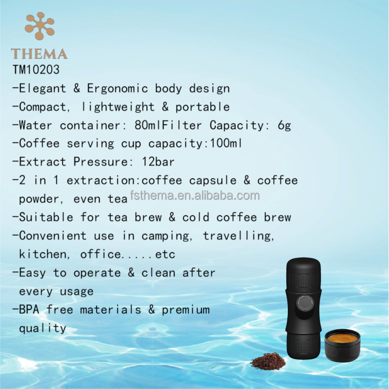 Service unique, Manuel, Haute pression 15-20bar, Espresso/Café moulu/Nespresso, Utilisation en extérieur, Facile à nettoyer, Mini portable, Bon pour traval