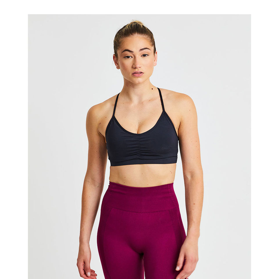 Nouveau design, soutien-gorge de sport froncé très tendance, avec détail central froncé, bretelles fines et maintien élevé, dernier modèle pour femme.