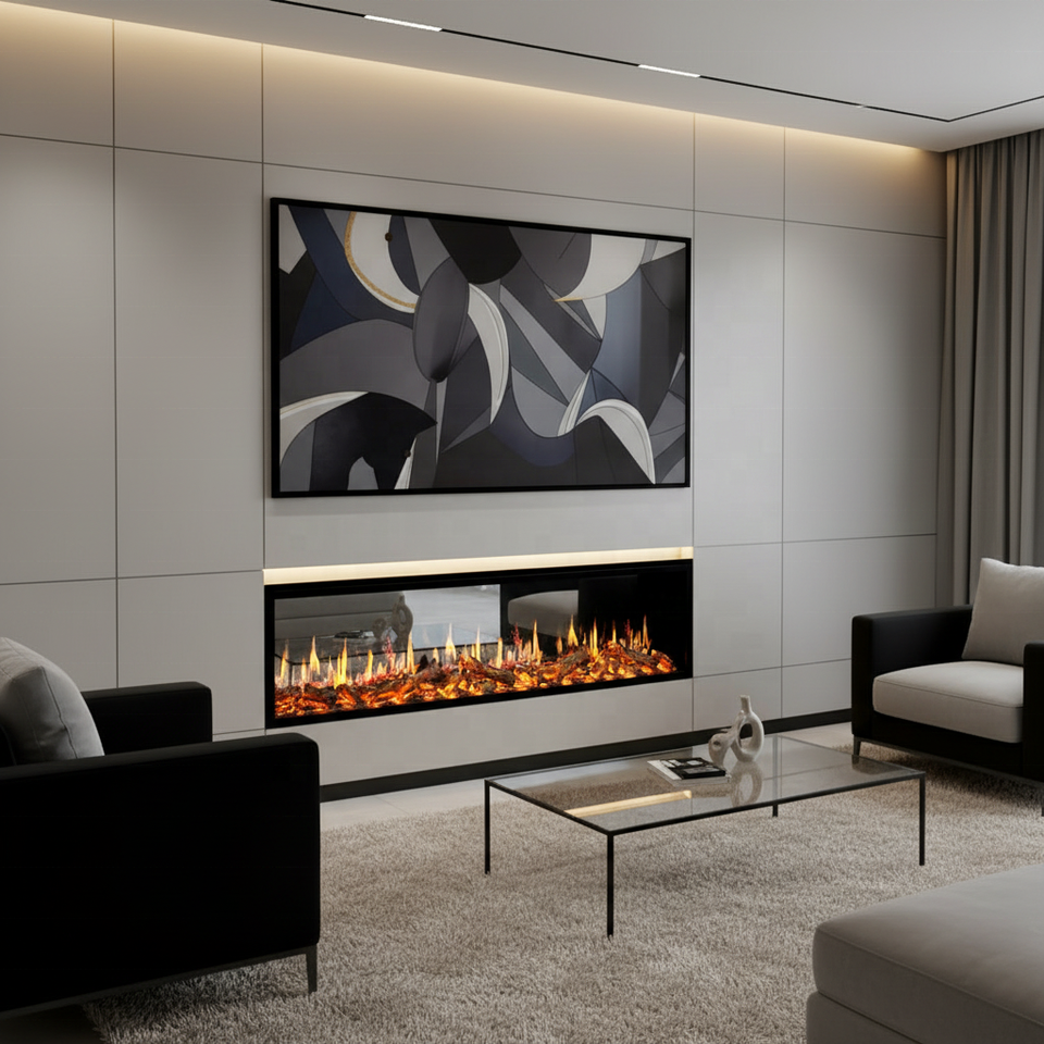 Nouvelle Conception Cheminée Électrique Intérieure pour Maison et Hôtel, Éclairage LED Écologique, Acier Laminé à Froid Intégré