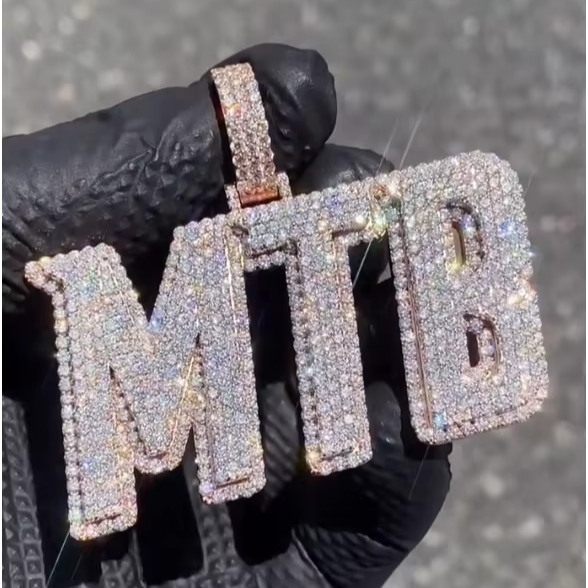 Nouveau design, pendentif personnalisé en argent S925 avec initiale en diamant taille ronde, style hip-hop glacé, pendentif en moissanite