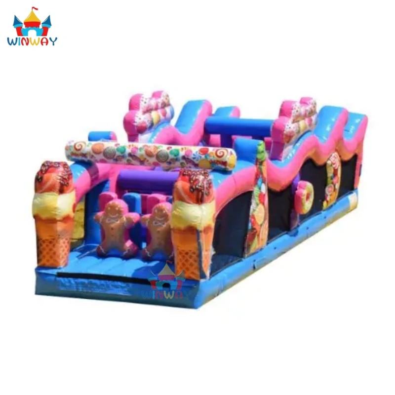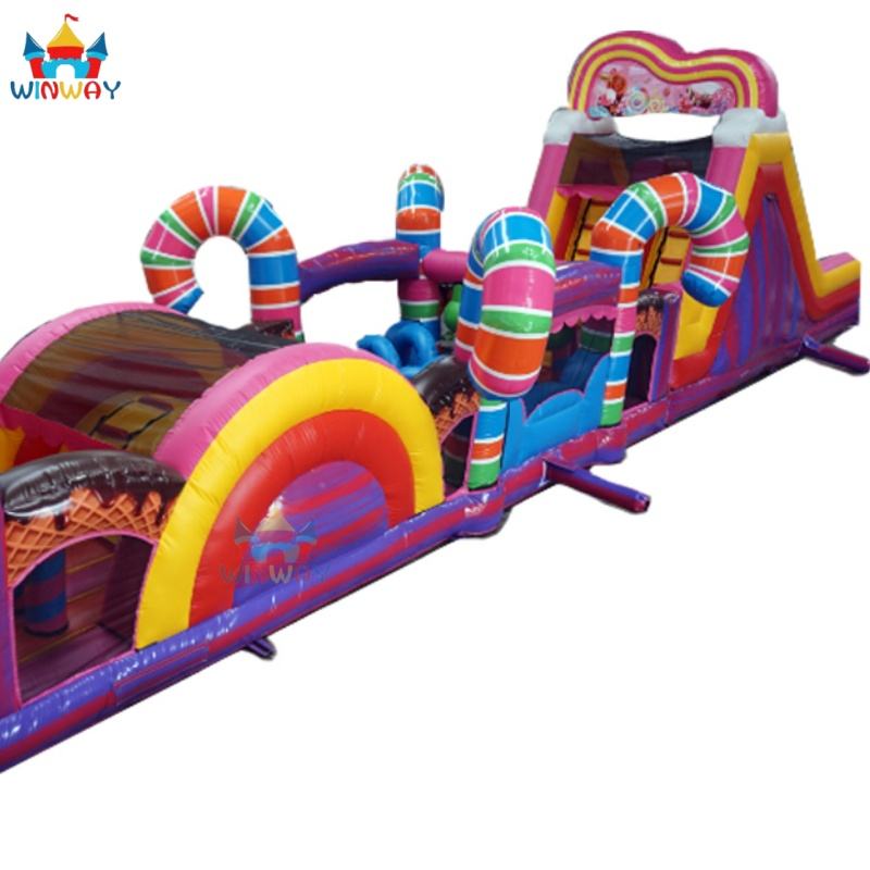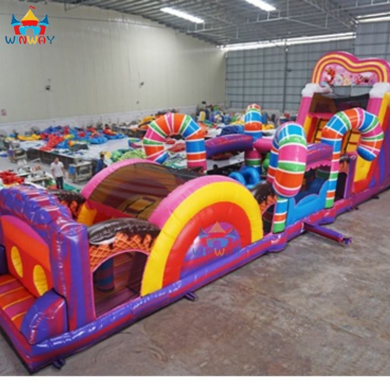 Nouveau design de parcours d'obstacles gonflable Candyland de 85 pieds de long, location, matériau PVC de 0,55 mm, garantie de 3 ans, logo personnalisé WINWAYTOYS