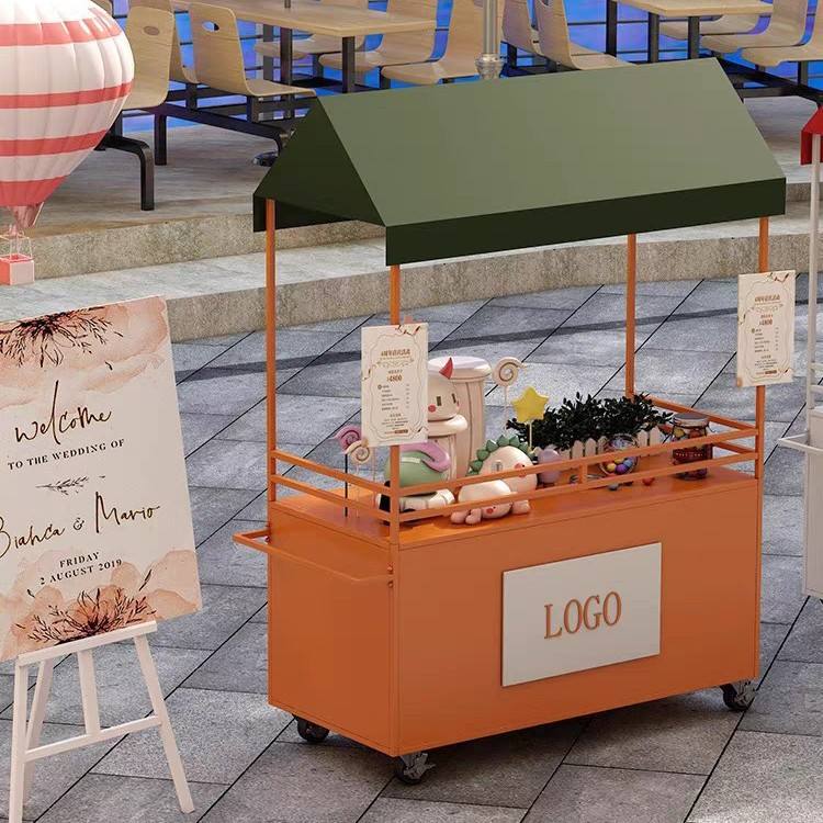 Nouveau chariot à snacks multifonctionnel pour influenceurs avec auvent - Design tendance | Camion de restauration mobile pour la promotion dans les centres commerciaux