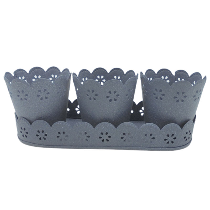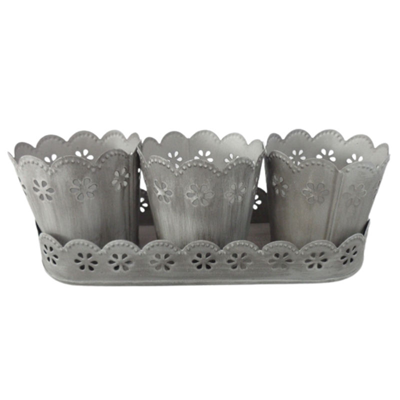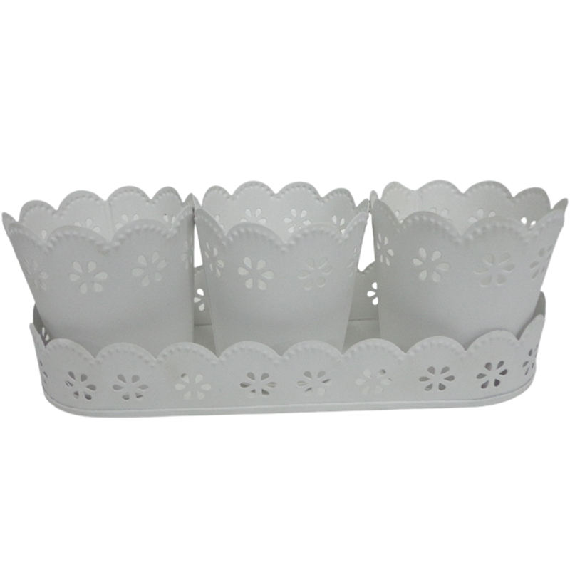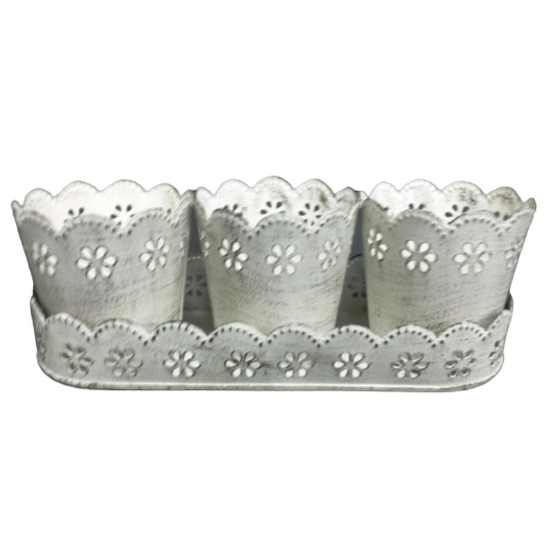 Nouveau plateau ovale en fer design avec 3 pots à bougies votifs en blanc pour la décoration de table et de jardin personnalisés faits à la main en vrac