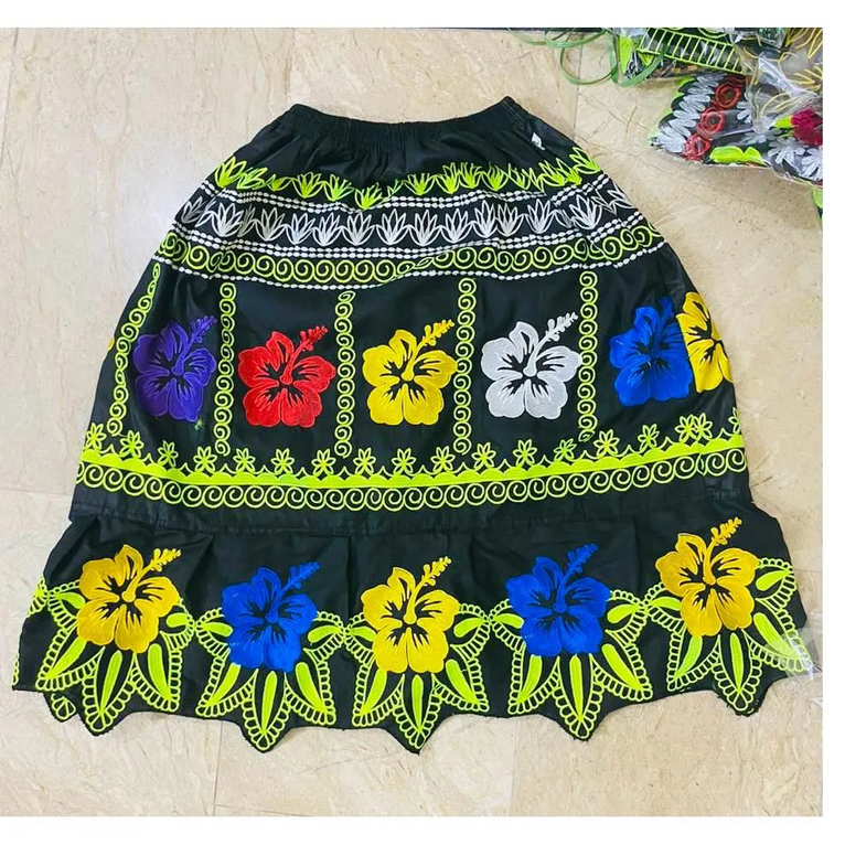 Nouvelle conception de jupe de style insulaire Micronésie Chuuk Guam Marshall Hawaï Mumu brodée en tissus 100% coton, personnalisation possible